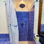De er udsigt over havet, mens badeværelset er udstyret med et bidet og en bruser.